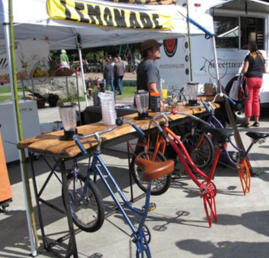 For 2024, we will be building and bringing a fully functional bike blender bar, which will be open for a few hours each day so bar guests can blend their own mixed drinks.